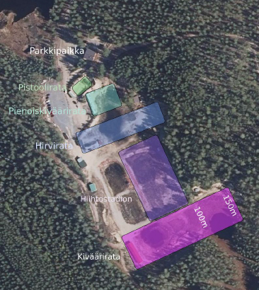• Talvella: puomin ollessa ylhäällä pienoiskivääriradalla ja hirviradalla ampuminen on kielletty. Ajoneuvot on jätettävä puomin edustalla olevalle pysäköintialueelle ladun vuoksi.